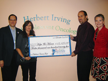Our Big StridesTop Photo: Donation of DVD players, PSP's, assorted PSP games, DVD movies and gift cards to the children at The Hassenfeld Children's Center at NYU for Christmas 2009. Bottom Photo: Wende and Mark presented a check from Jordan's Footsteps to the organization Hope and Heroes Children's Cancer Fund in order for them to purchase items that were on their Wish List for the children who are undergoing cancer treatment. Below is a list of the items that will be purchased with the Jordan's Footsteps donation: (3) “Big Screen” Video Eyewear The total of the gift was $12,125.